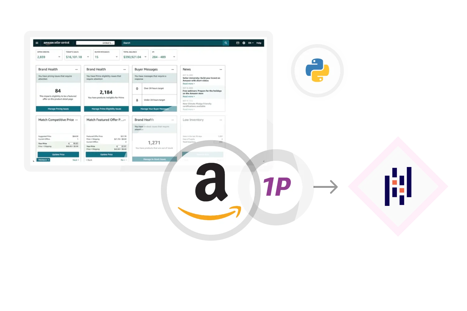 Our client, alongside Amazon third-party (3P) sales, was expanding their sales through the first-party (1P) model, where Amazon directly purchases products in bulk and places orders on behalf of the company. The first-party model differs from the third-party one, is available only to a select group of sellers and products, but offers several advantages and is more profitable.